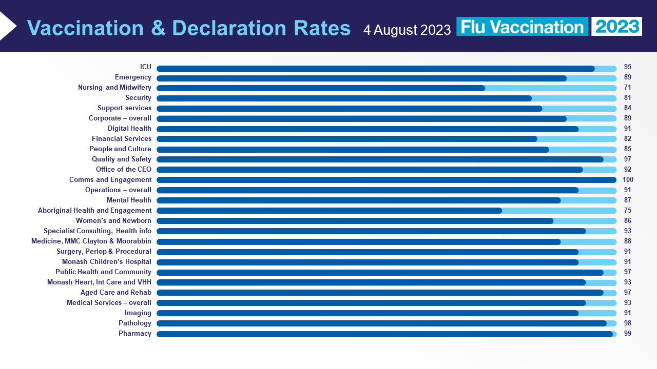 At Monash Health 100% of our employees must vaccinate or declare their vaccination status for Influenza. Join us in the fight against the flu.